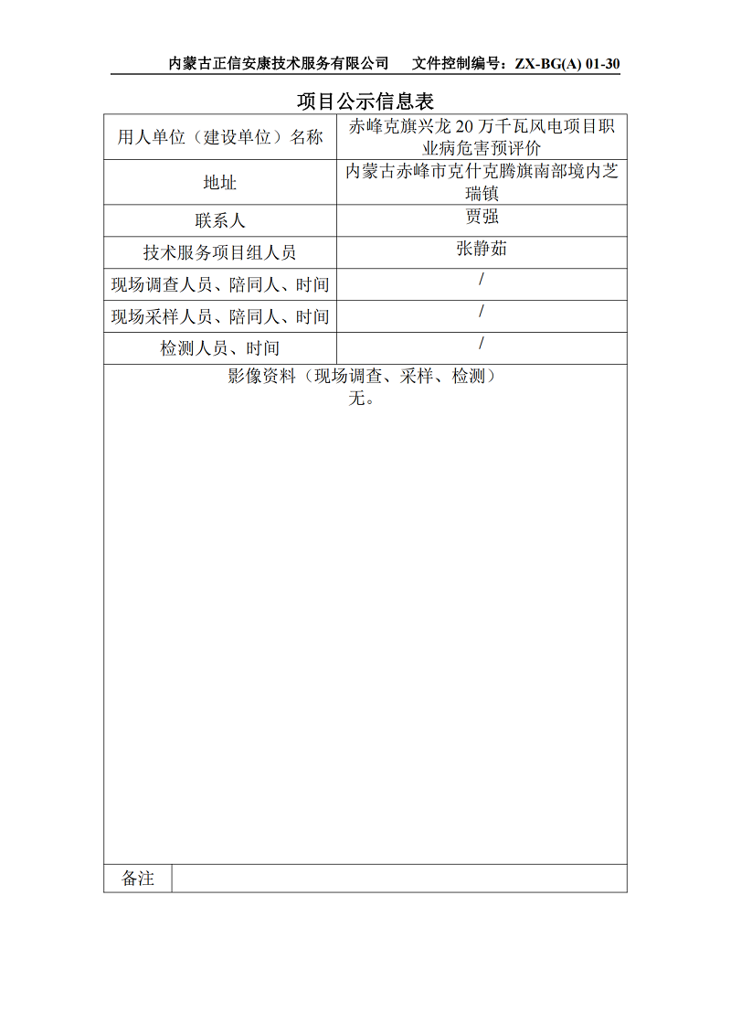 赤峰克旗興龍20萬千瓦風(fēng)電項(xiàng)目職業(yè)病危害預(yù)評價(jià)