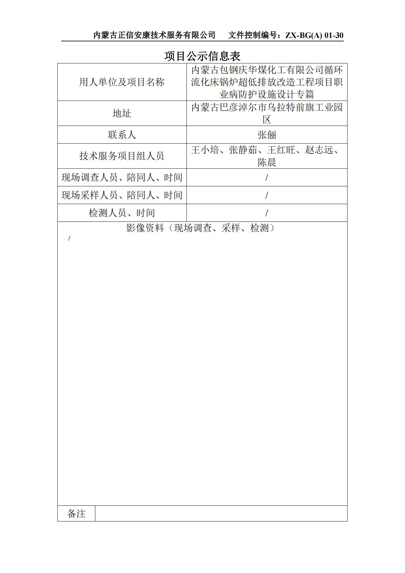 內(nèi)蒙古包鋼慶華煤化工有限公司循環(huán)流化床鍋爐超低排放改造工程項(xiàng)目職業(yè)病防護(hù)設(shè)施設(shè)計(jì)專(zhuān)篇
