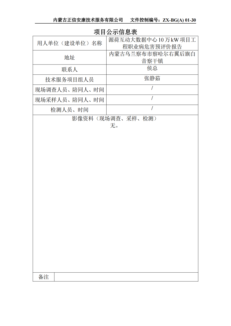 源荷互動大數(shù)據(jù)中心10萬kW項目工程職業(yè)病危害預評價
