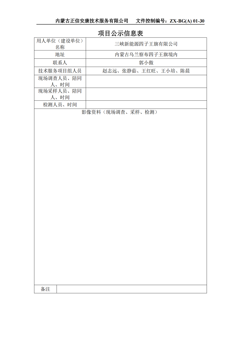 三峽烏蘭察布新一代電網(wǎng)友好綠色電站示范項目(一期)職業(yè)病危害預評價報告項目公示信息表