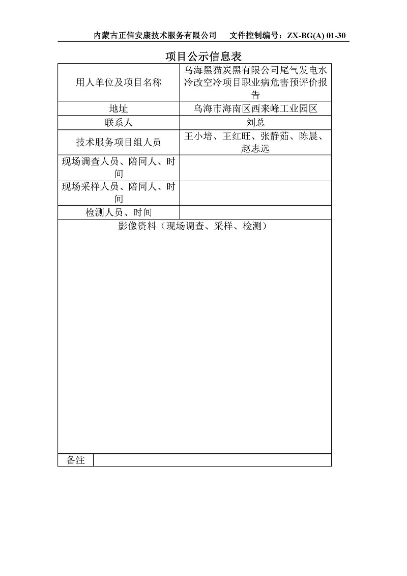 烏海黑貓?zhí)亢谟邢薰疚矚獍l(fā)電水冷改空冷項目職業(yè)病危害預(yù)評價項目公示