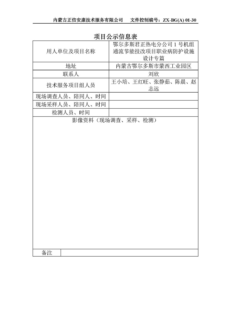 鄂爾多斯君正熱電分公司1號機(jī)組通流節(jié)能技改項(xiàng)目職業(yè)病防護(hù)設(shè)施設(shè)計(jì)專篇項(xiàng)目公示