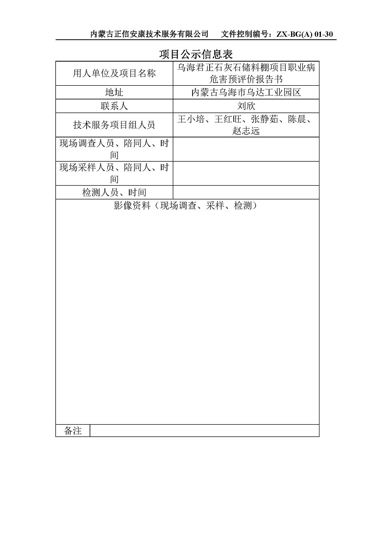 烏海君正石灰石儲料棚項目職業(yè)病危害預評價項目公示
