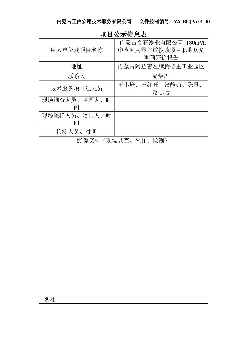 內蒙古金石鎂業(yè)有限公司 180m3h中水回用零排放技改項目職業(yè)病危害預評價報告