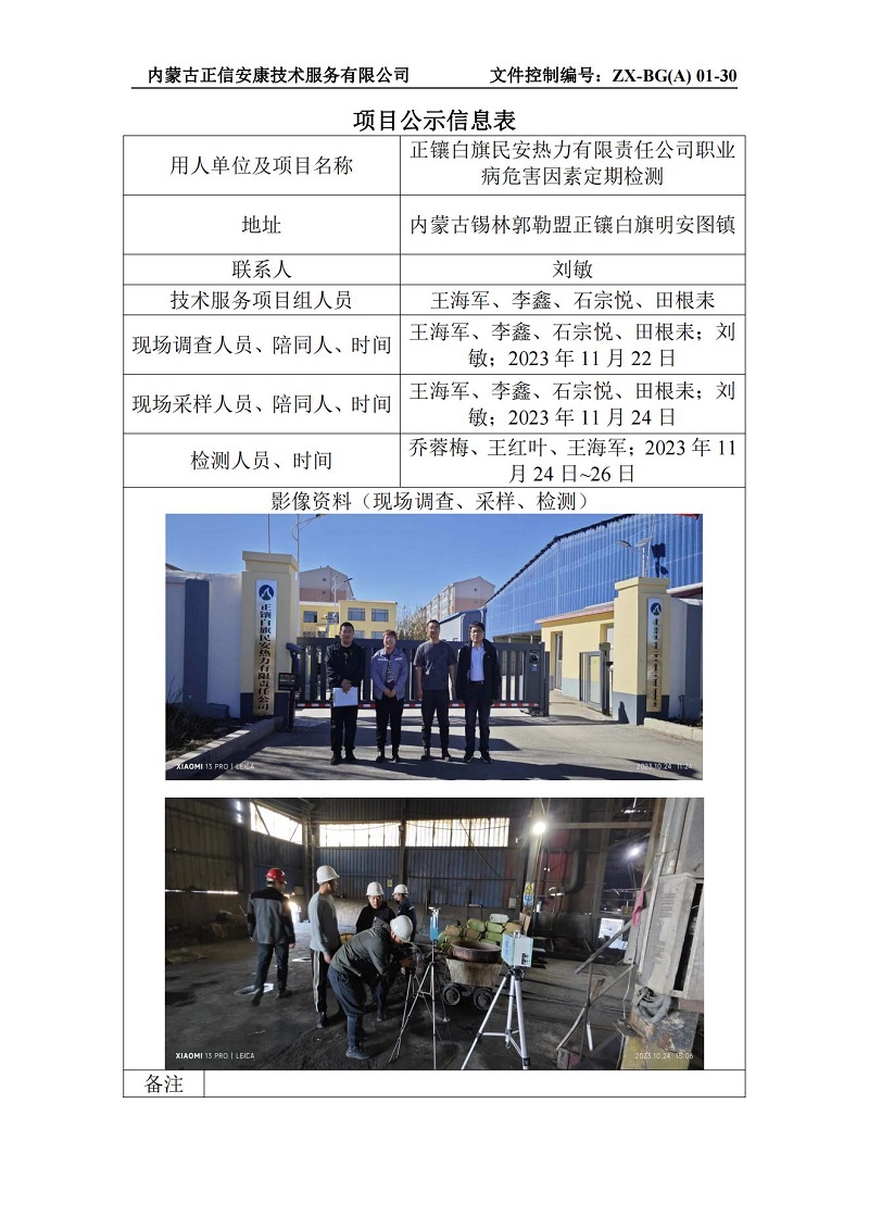 正鑲白旗民安熱力有限責(zé)任公司職業(yè)病危害因素定期檢測(cè)