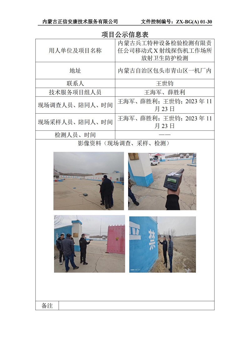 內(nèi)蒙古兵工特種設(shè)備檢驗檢測有限責任公司移動式X射線探傷機工作場所放射衛(wèi)生防護檢測