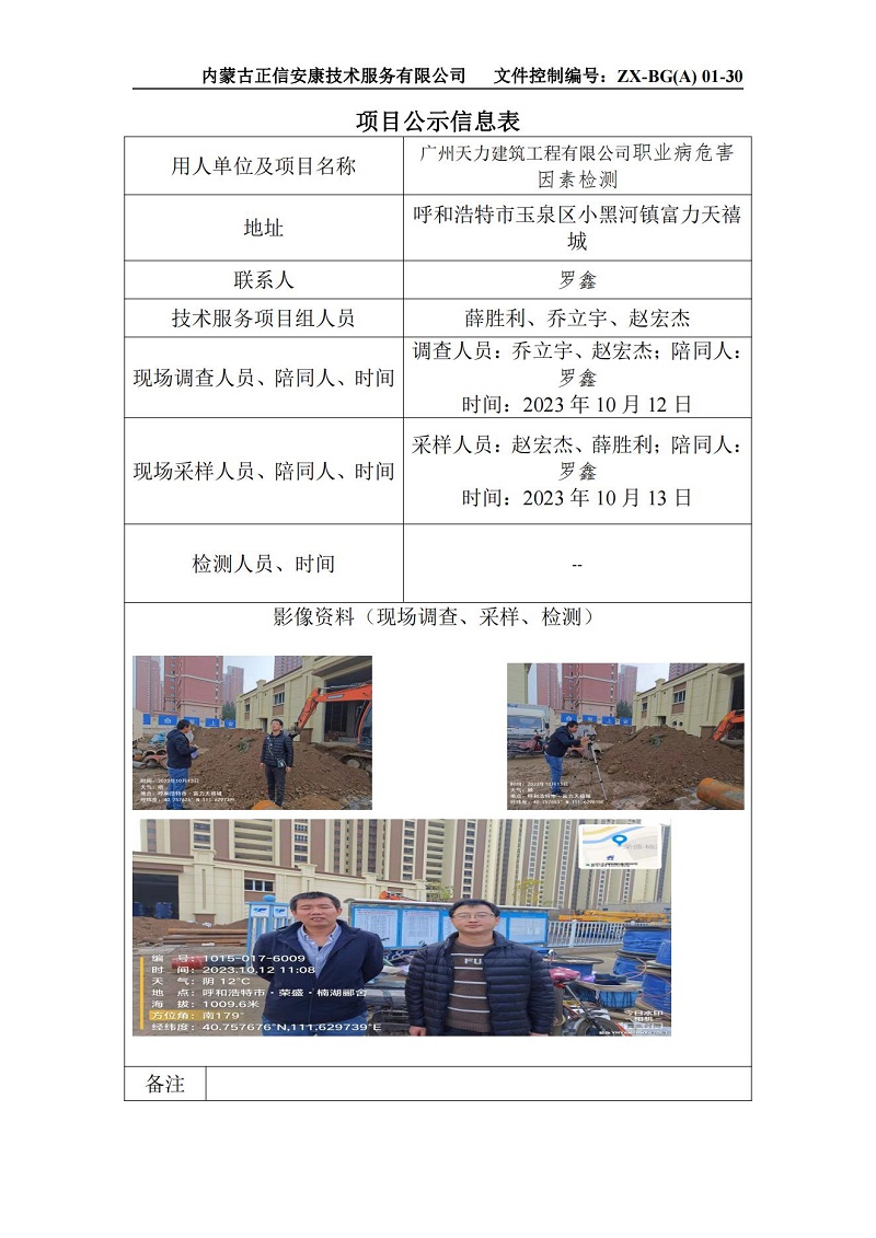 廣州天力建筑工程有限公司職業(yè)病危害因素檢測(cè)項(xiàng)目公示信息表