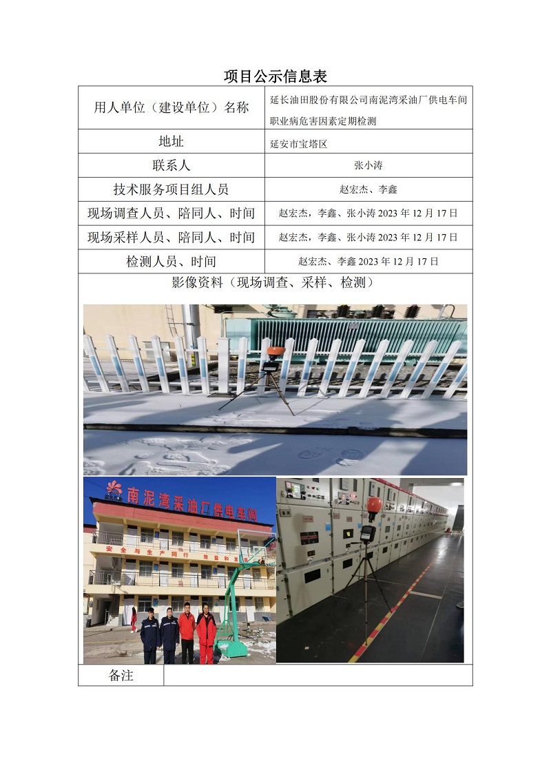 延長(zhǎng)油田股份有限公司南泥灣采油廠供電車(chē)間職業(yè)病危害因素定期檢測(cè)
