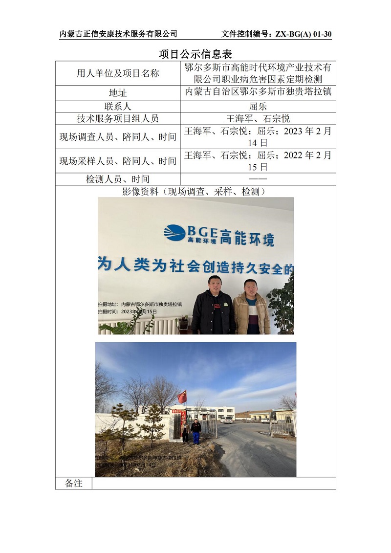 鄂爾多斯市高能時(shí)代環(huán)境產(chǎn)業(yè)技術(shù)有限公司職業(yè)病危害因素定期檢測(cè)項(xiàng)目公示