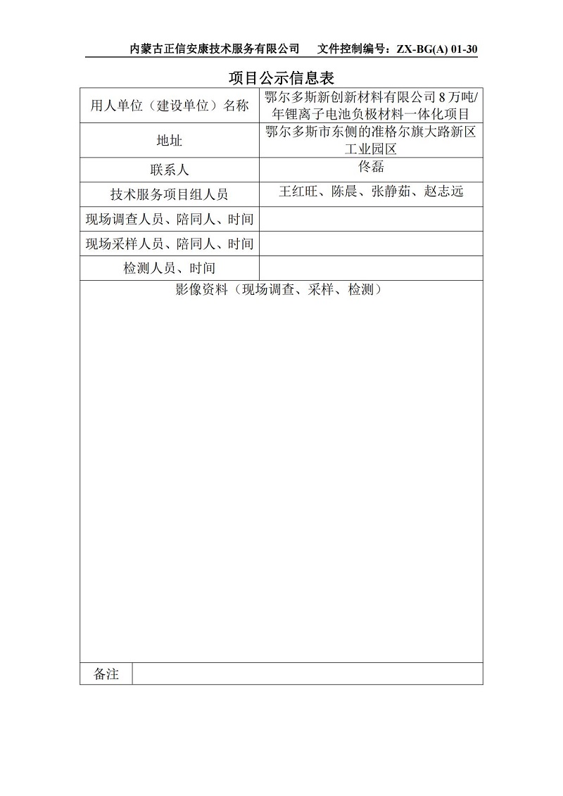 鄂爾多斯市新創(chuàng)8萬噸鋰離子負(fù)極材料一體化項(xiàng)目預(yù)評公示信息表