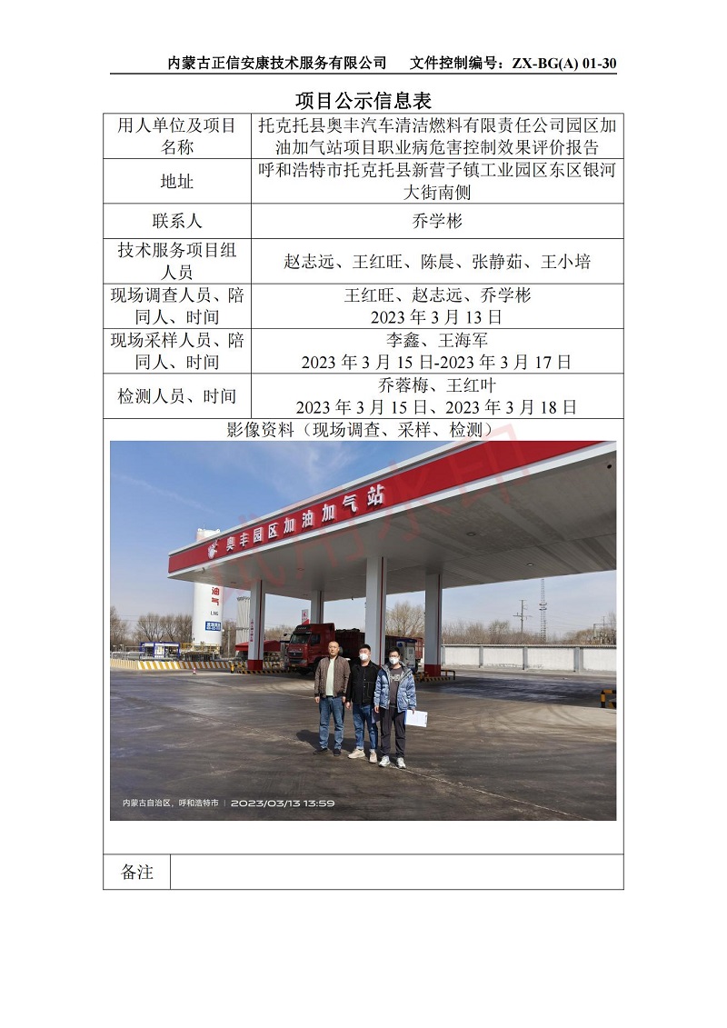 托克托縣奧豐汽車清潔燃料有限責(zé)任公司園區(qū)加油加氣站項(xiàng)目職業(yè)病危害控制效果評(píng)價(jià)報(bào)告-項(xiàng)目公示信息表_