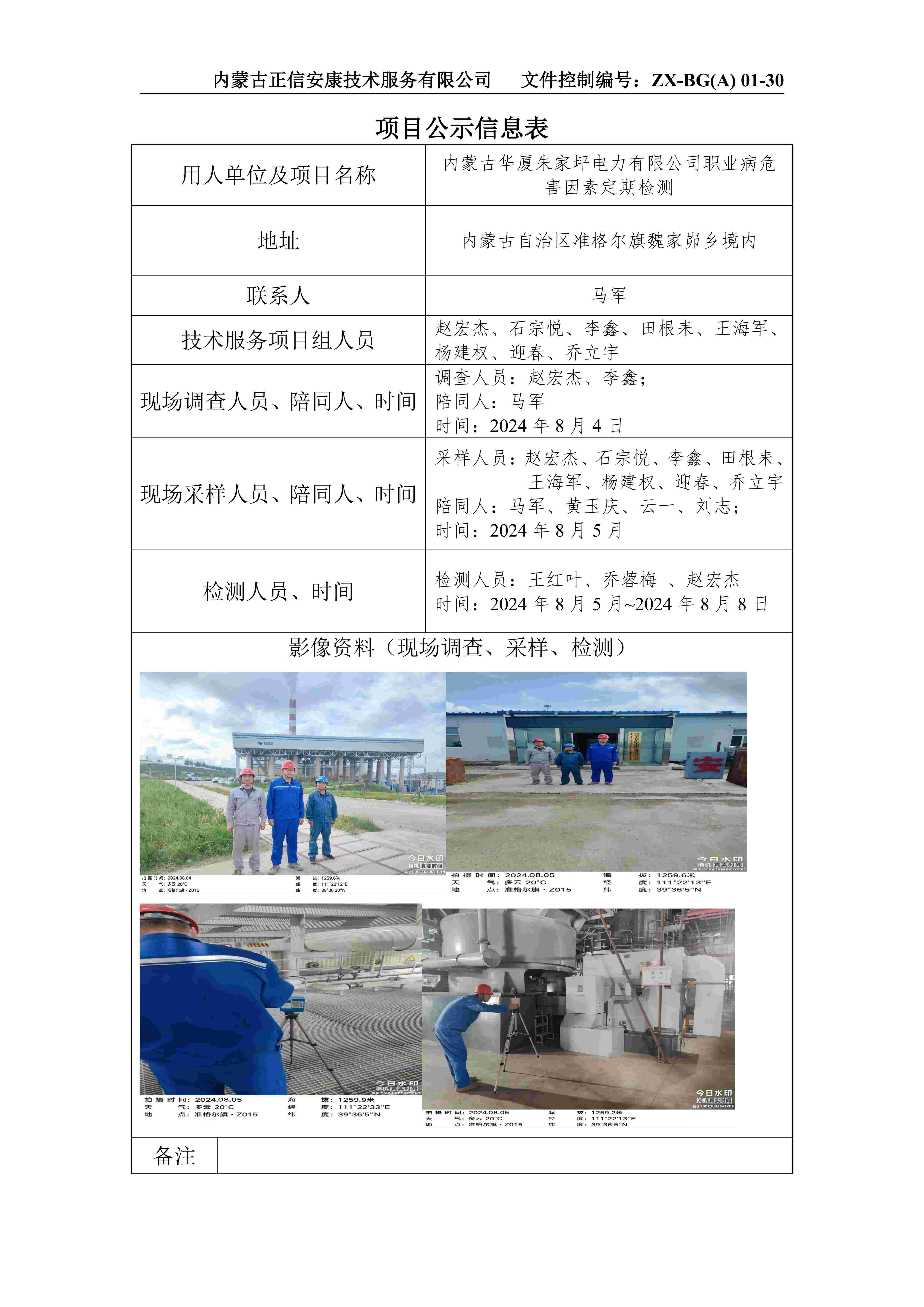 內(nèi)蒙古華廈朱家坪電力有限公司職業(yè)病危 害因素定期檢測