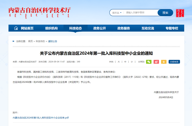 熱烈祝賀公司成功申報內蒙古自治區(qū)2024年第一批入庫科技型中小企業(yè)