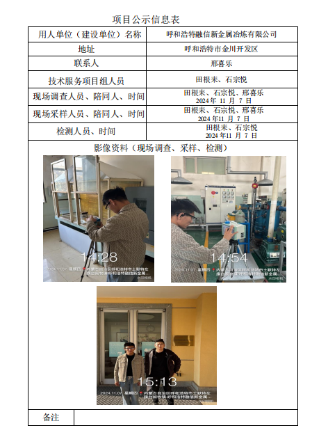 呼和浩特融信新金屬冶煉有限公司職業(yè)衛(wèi)生定期檢測(cè)