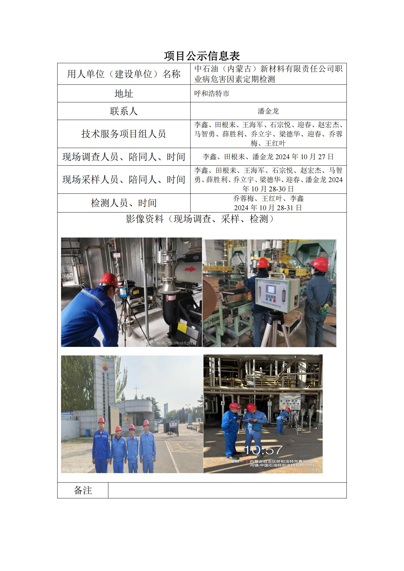 中石油(內(nèi)蒙古)新材料有限責(zé)任公司職 業(yè)病危害因素定期檢測