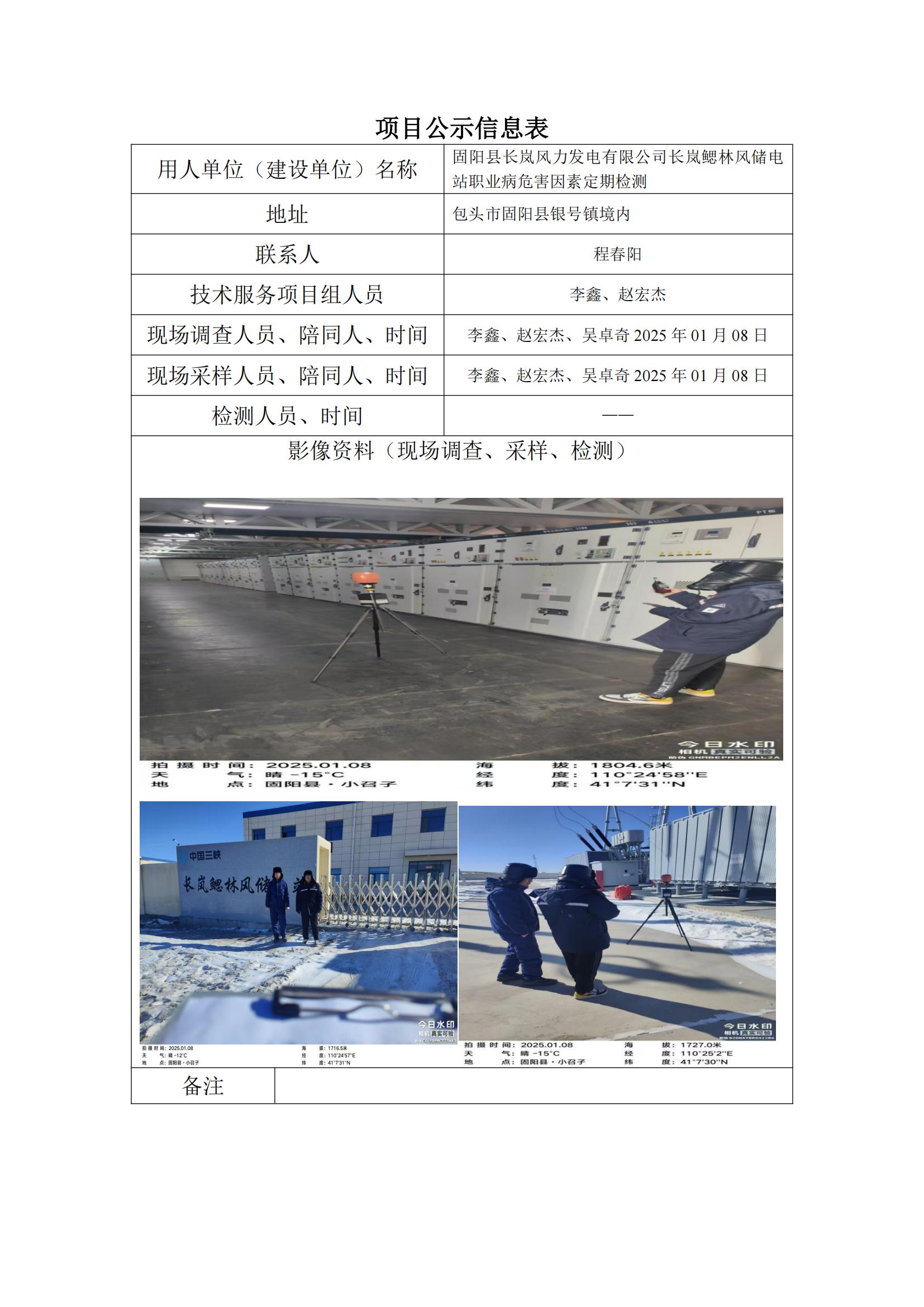 固陽縣長(zhǎng)嵐風(fēng)力發(fā)電有限公司長(zhǎng)嵐鰓林風(fēng)儲(chǔ)電 站職業(yè)病危害因素定期檢測(cè)