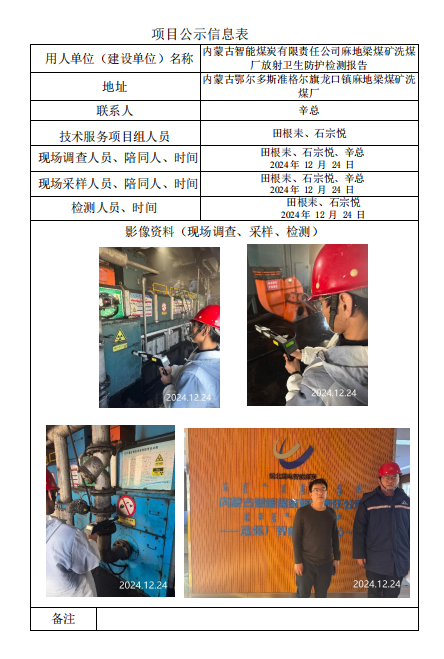 內(nèi)蒙古智能煤炭有限責(zé)任公司麻地梁煤礦洗煤廠放射衛(wèi)生防護(hù)檢測報(bào)告