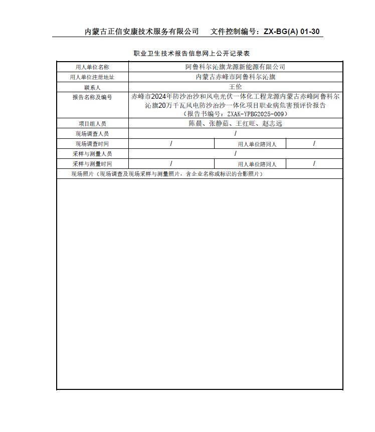 赤峰市2024年防沙治沙和風(fēng)電光伏一體化工程龍?jiān)磧?nèi)蒙古赤峰阿魯科爾沁旗20萬(wàn)千瓦風(fēng)電防沙治沙一體化項(xiàng)目職業(yè)病危害預(yù)評(píng)價(jià)報(bào)告