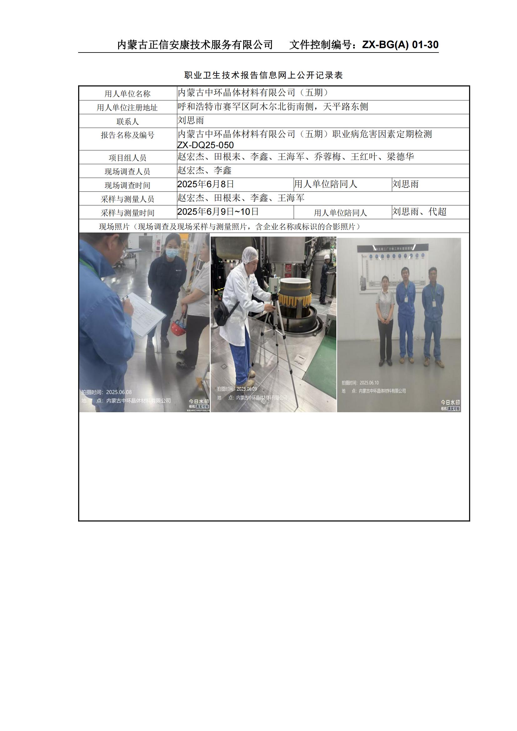 內(nèi)蒙古中環(huán)晶體材料有限公司(五期)職業(yè)病危害因素定期檢測